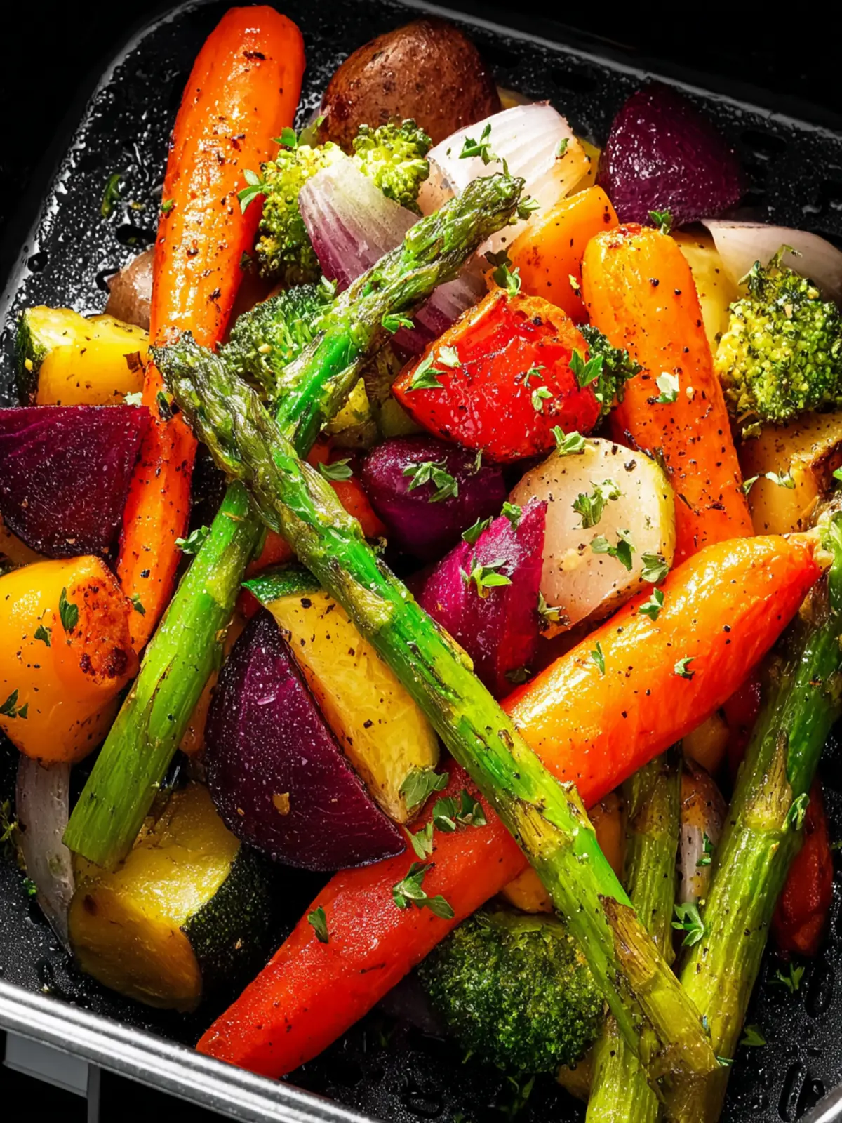 Deliciously air-fried mixed vegetables that are healthy and easy to prepare.