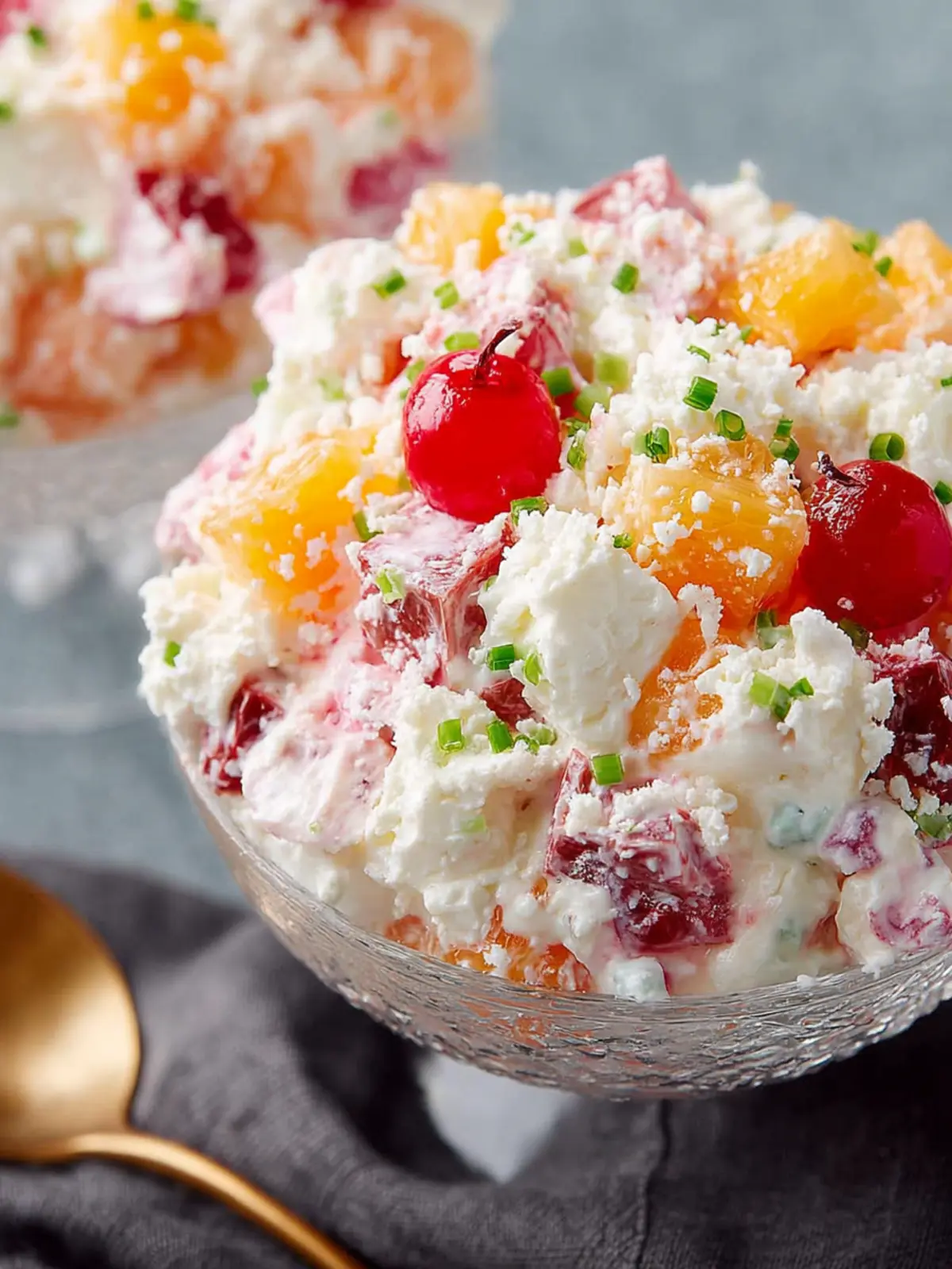 When it comes to presentation, think of light and playful ways to serve your ambrosia salad.