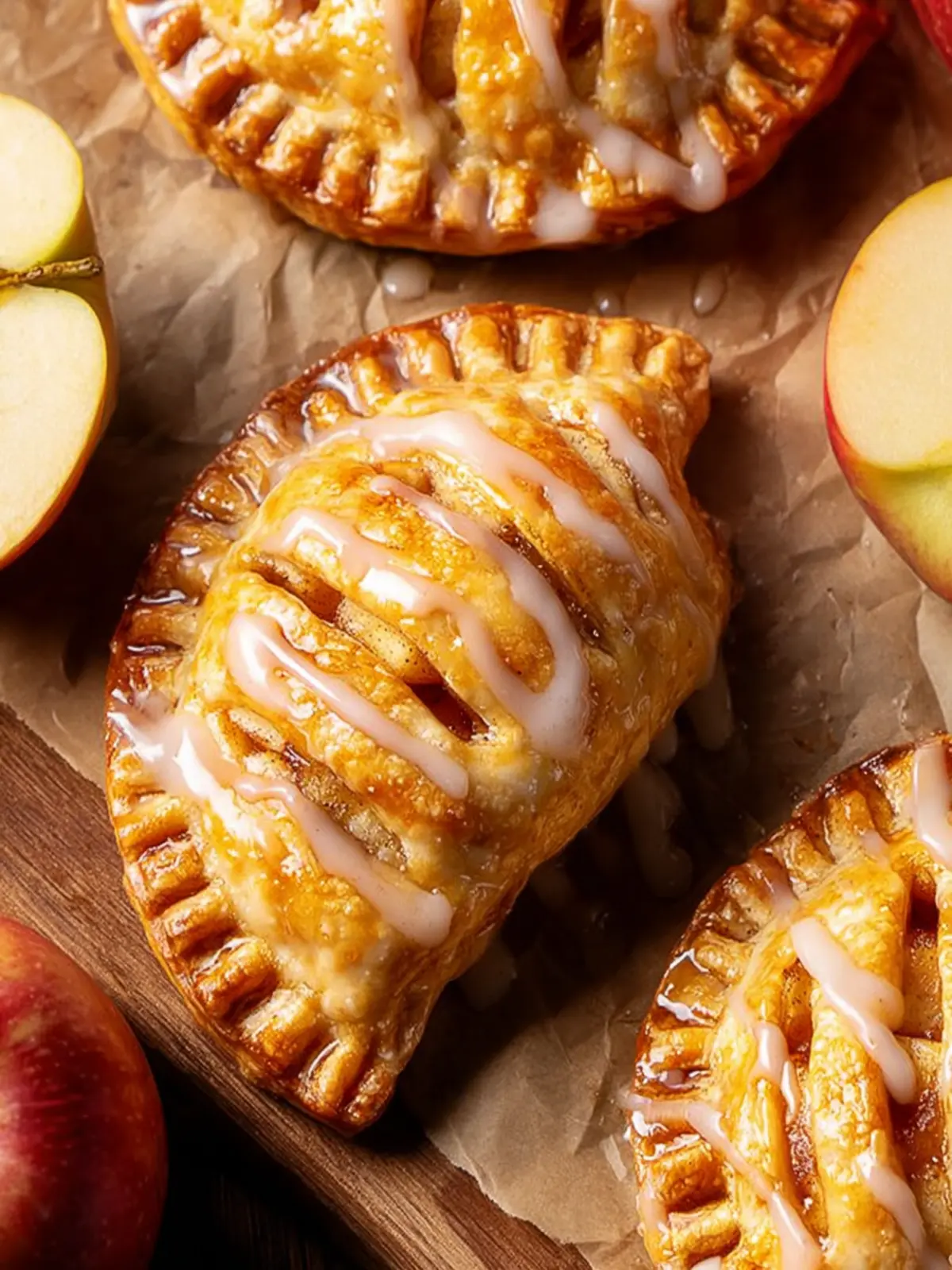 Delicious apple hand pies filled with Granny Smith and Honeycrisp apples, perfectly spiced and glazed for a sweet finish.