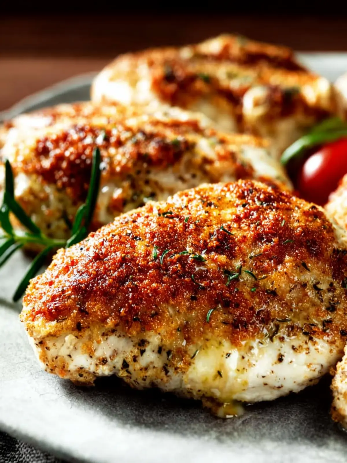 After pulling your chicken from the oven, allow it to rest for about 5 minutes. This step is crucial as it lets the juices redistribute, ensuring that each bite remains juicy and packed with flavor.