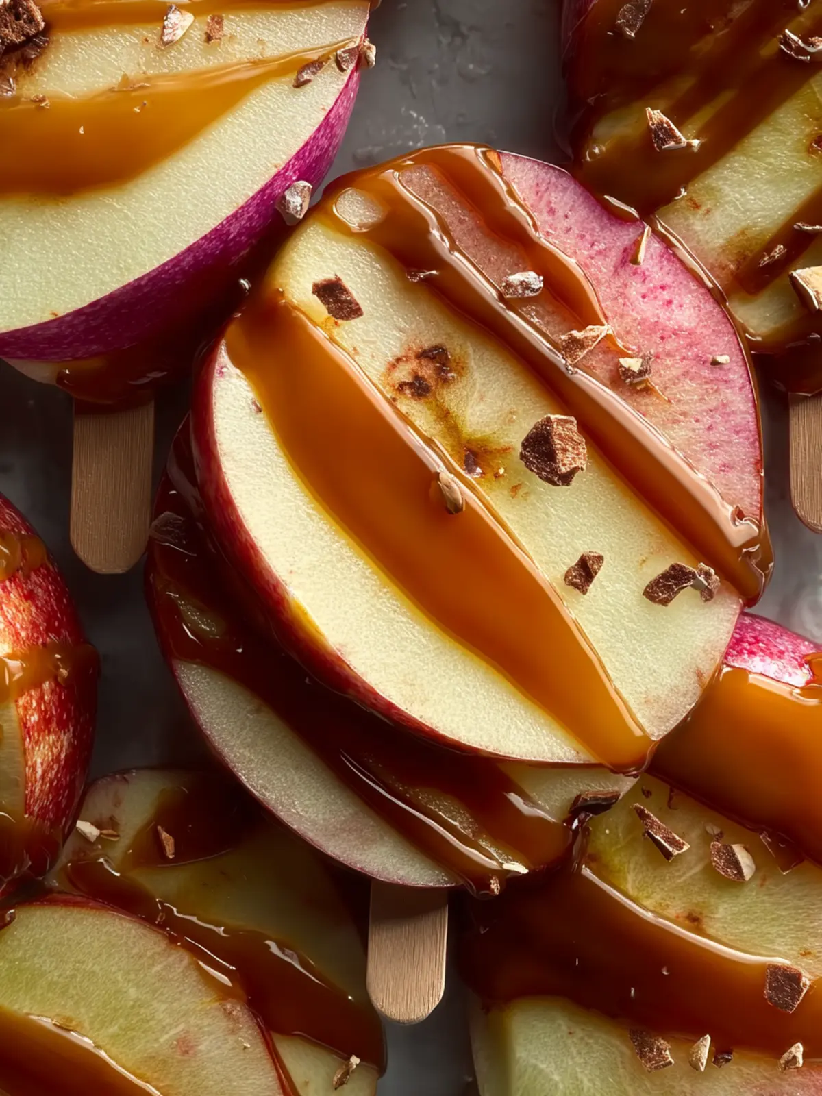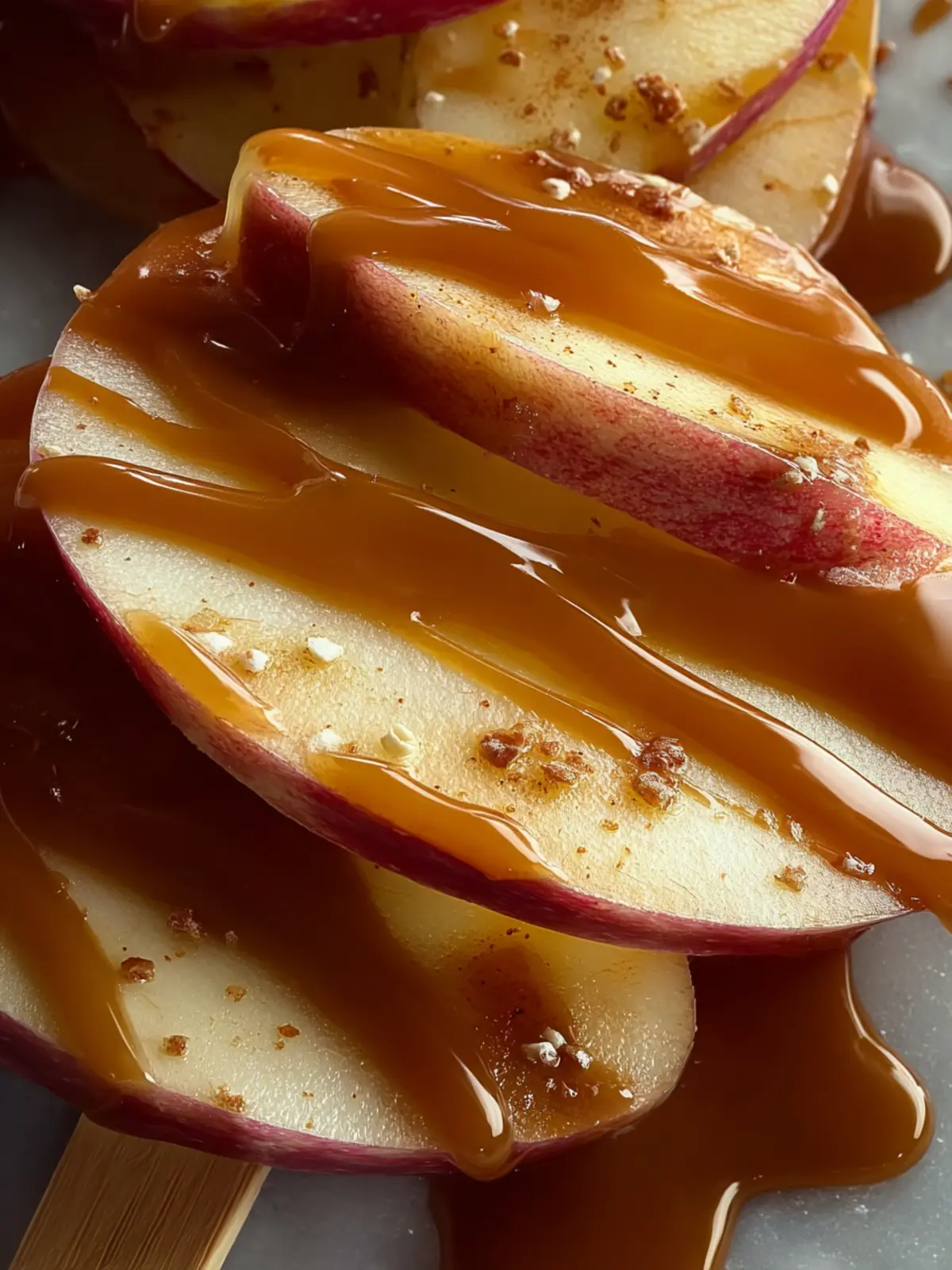 Delicious caramel-coated apple slices perfect for a sweet treat!