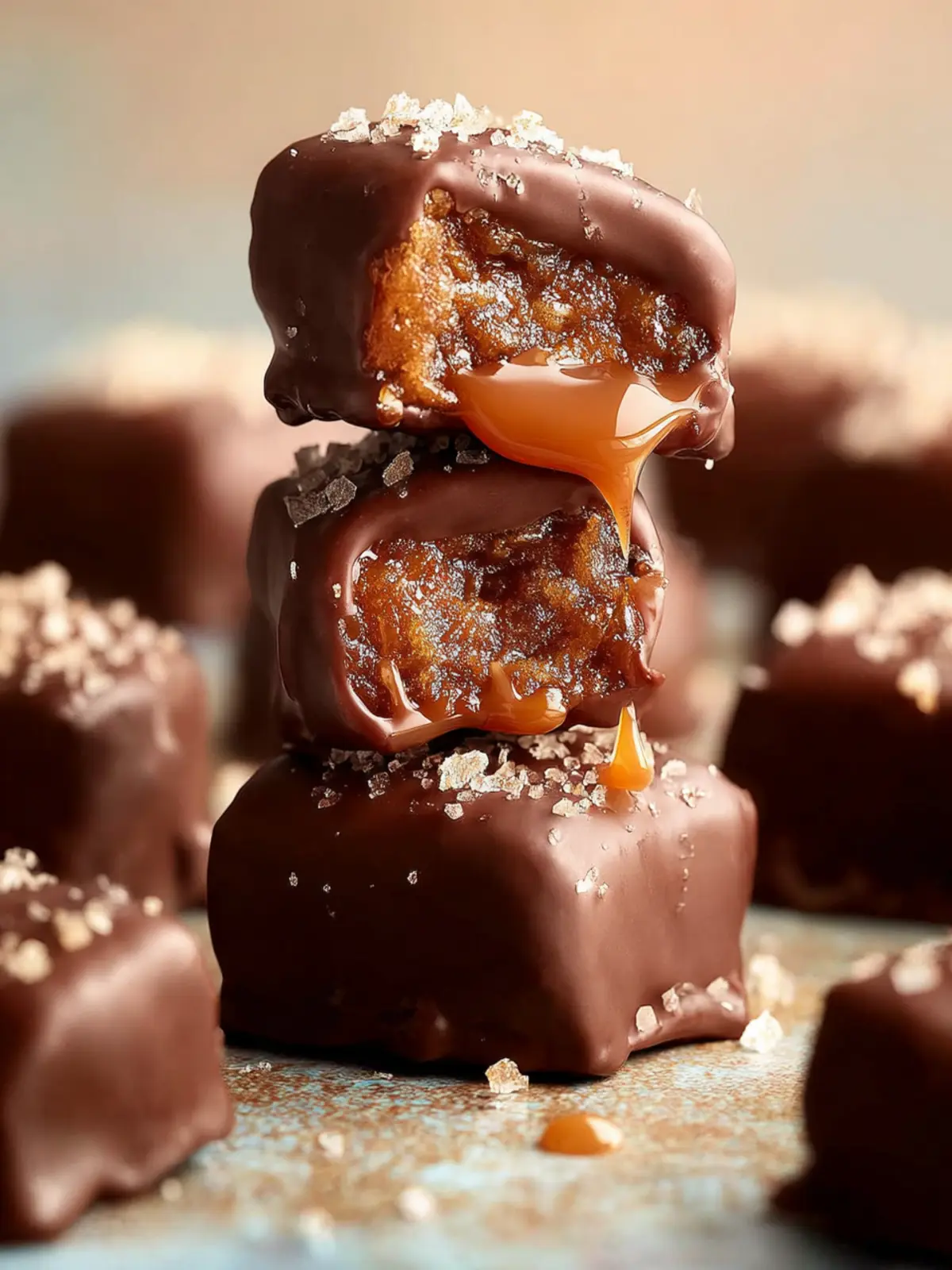 Sea Salt: A sprinkle of flaky sea salt on top of your finished caramels elevates the flavor profile, adding a satisfying contrast to the sweetness of the chocolate and dates. Just a pinch will do!