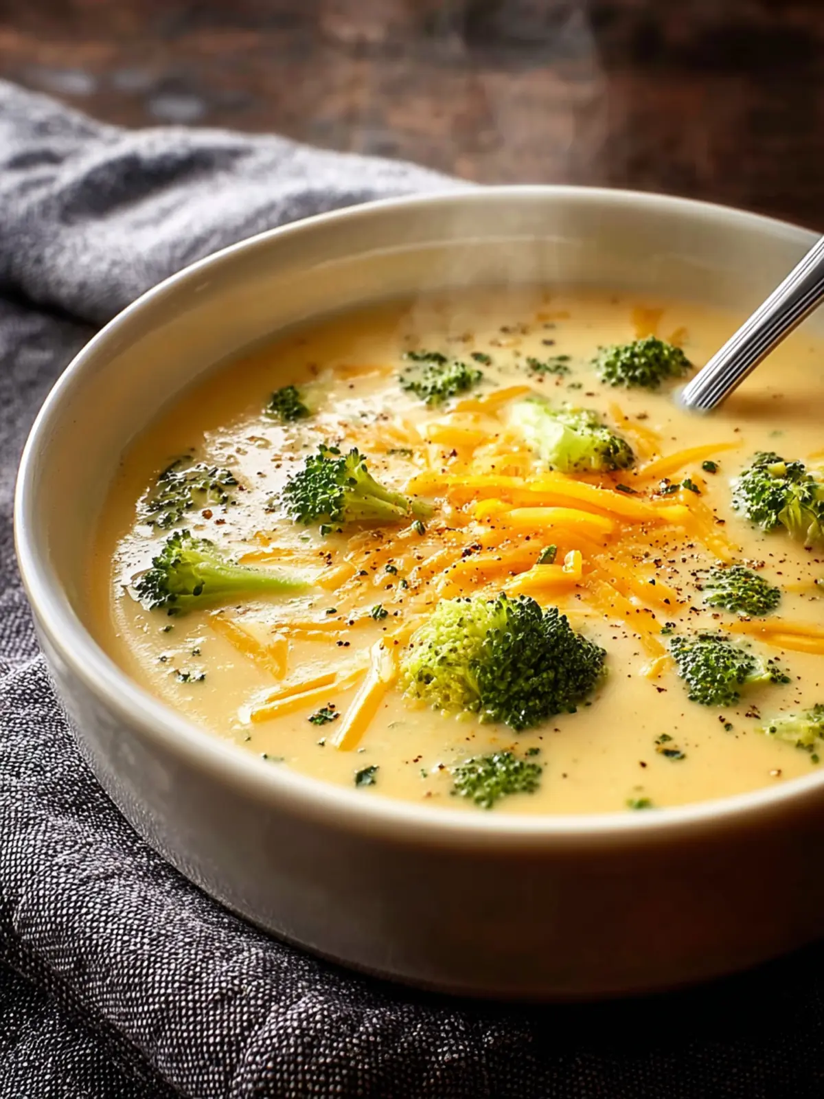 A delicious and creamy broccoli cheddar soup perfect for a comforting meal.