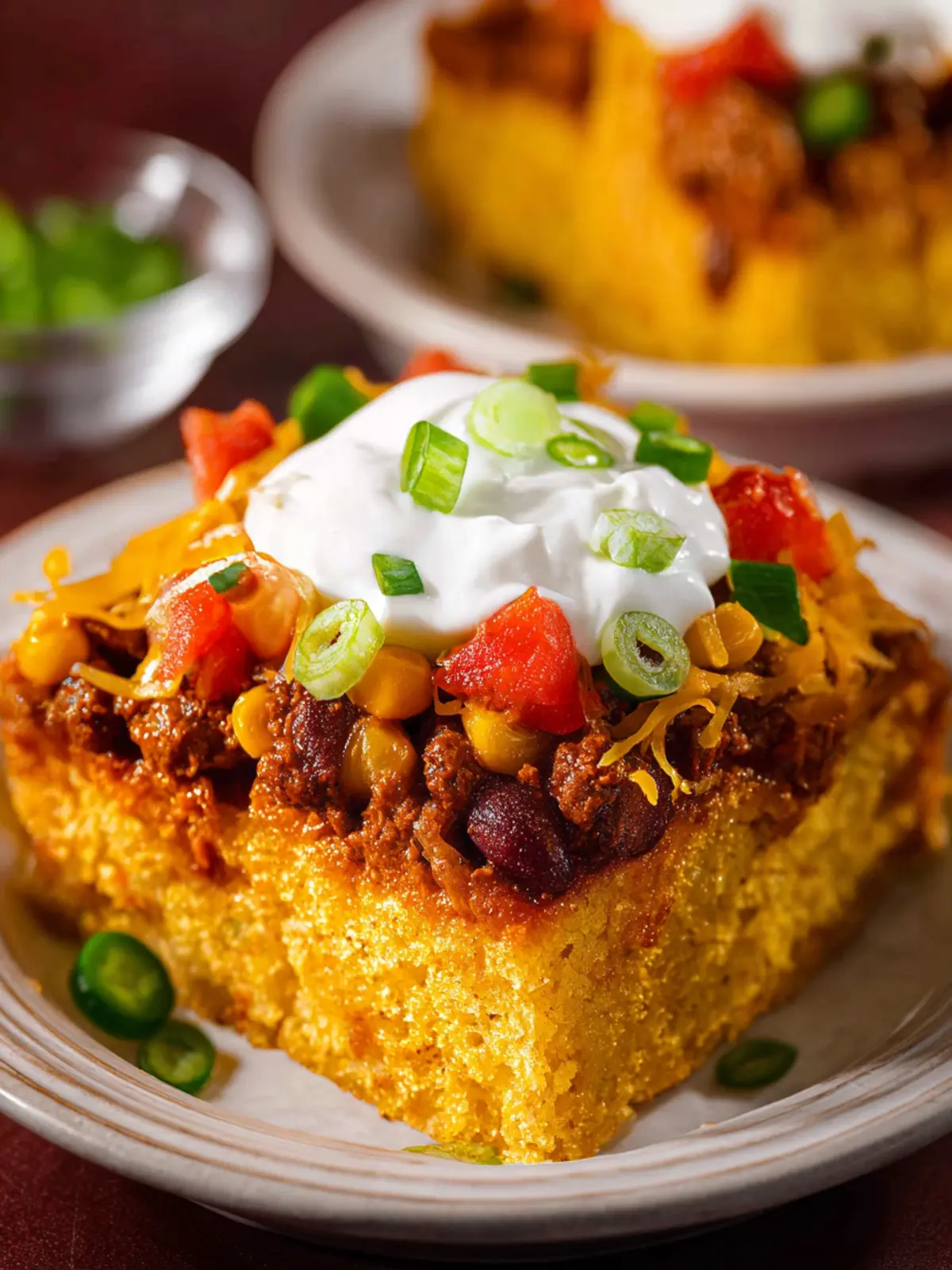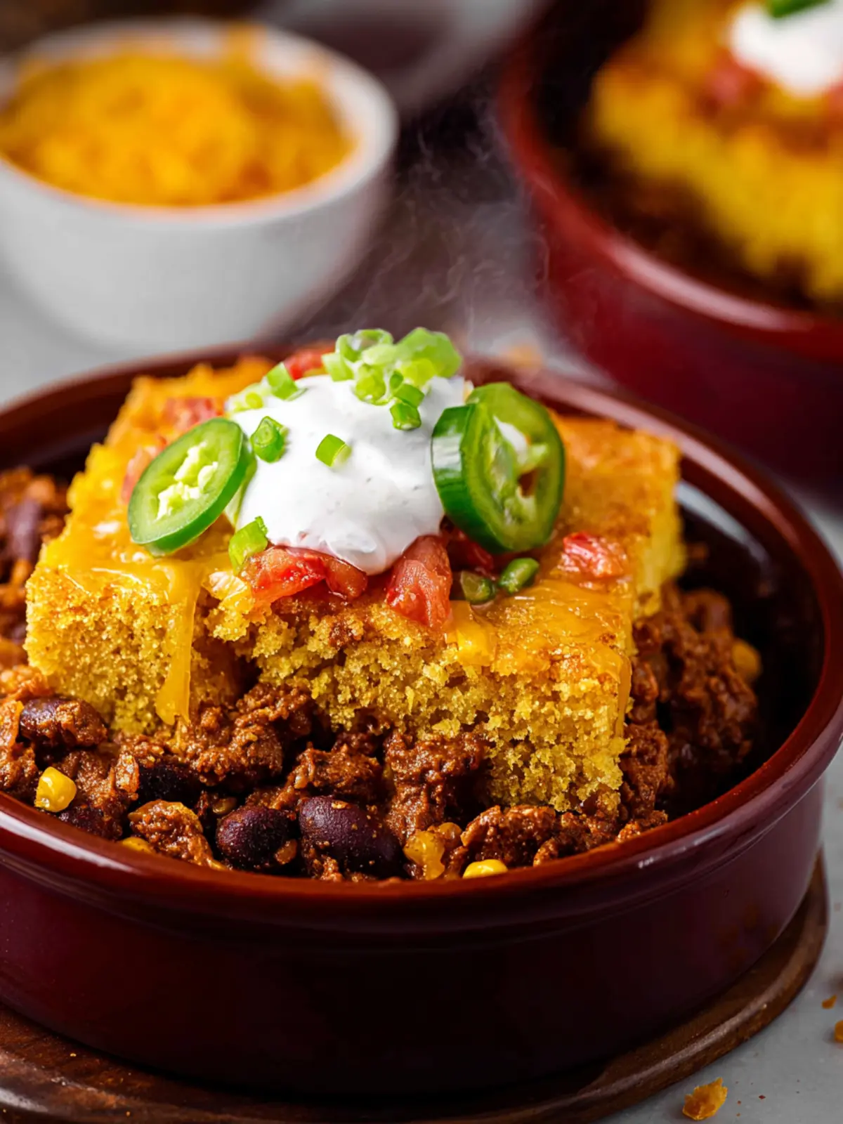 Balancing Act: The rich, hearty chili contrasts beautifully with the light, fluffy cornbread topping. Each spoonful offers a blend of spiciness from the chili and a hint of sweetness from the cornbread.