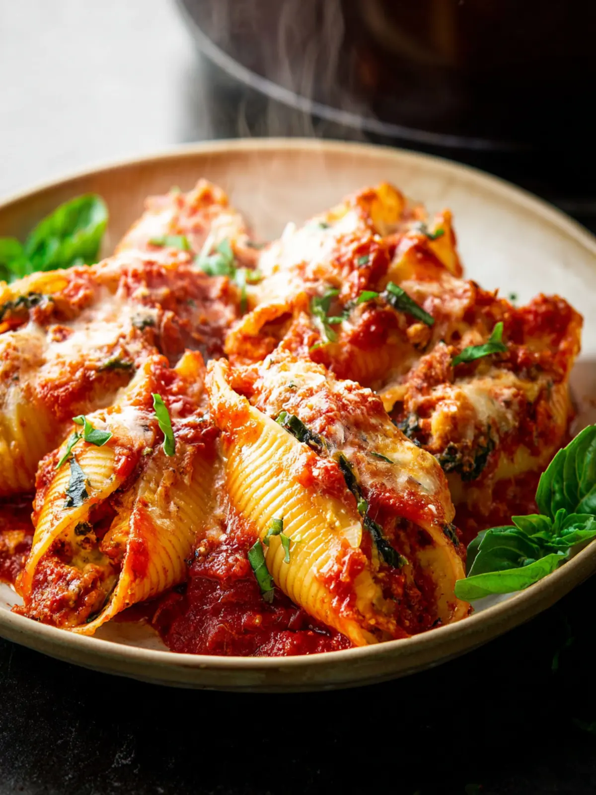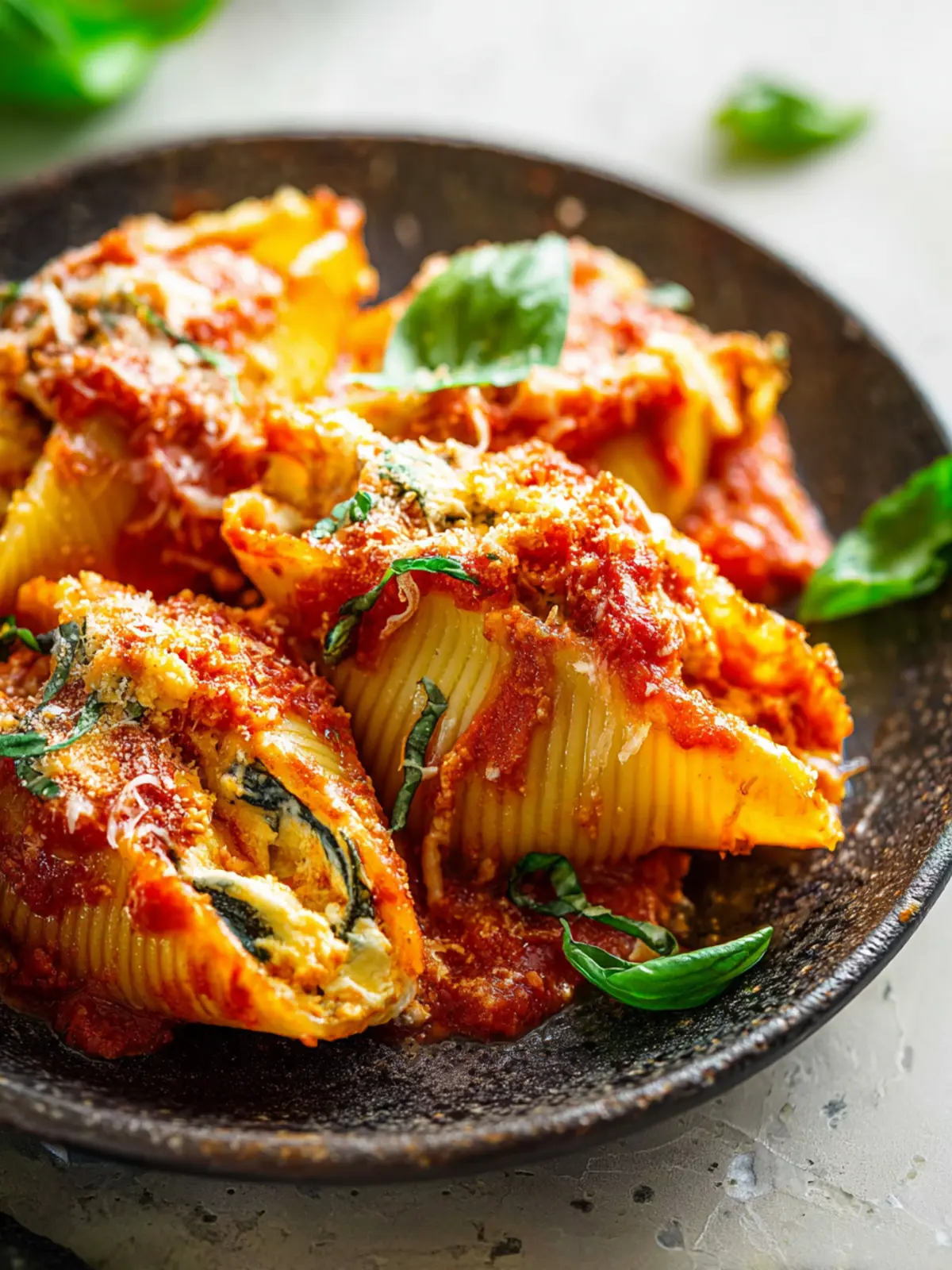 Delicious stuffed jumbo pasta shells filled with ricotta and spinach, slow-cooked to perfection.
