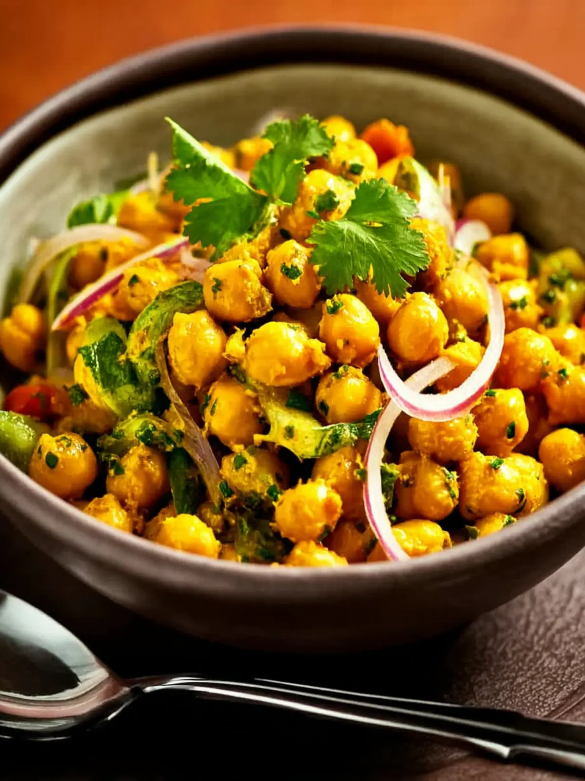 A refreshing and flavorful salad made with chickpeas, spices, and fresh herbs.