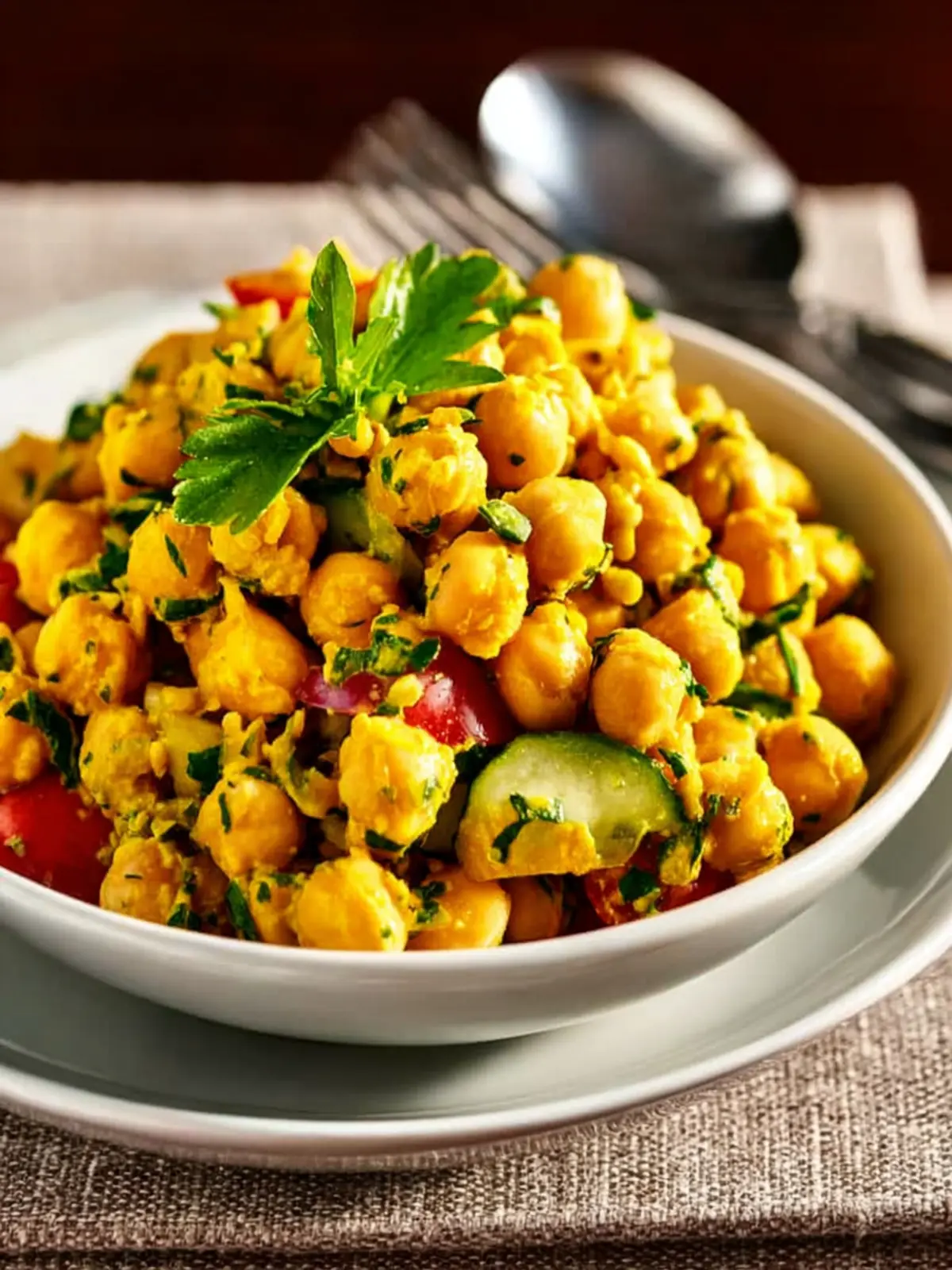 • As a Standalone Dish: Enjoy your curried chickpea salad as a light lunch or dinner. The high protein content from the chickpeas makes it a filling option perfect for busy weekdays.