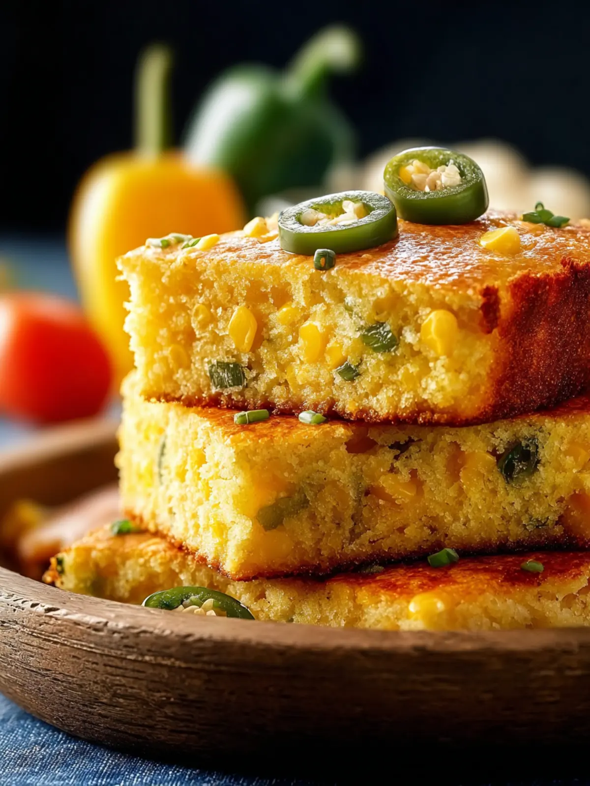 Flavor Fusion: The magic of this cornbread lies in its unique combination of savory ingredients, like diced jalapeños and shredded cheese, alongside the classic sweetness of cornmeal. This perfect balance creates layers of flavor that are hard to resist.