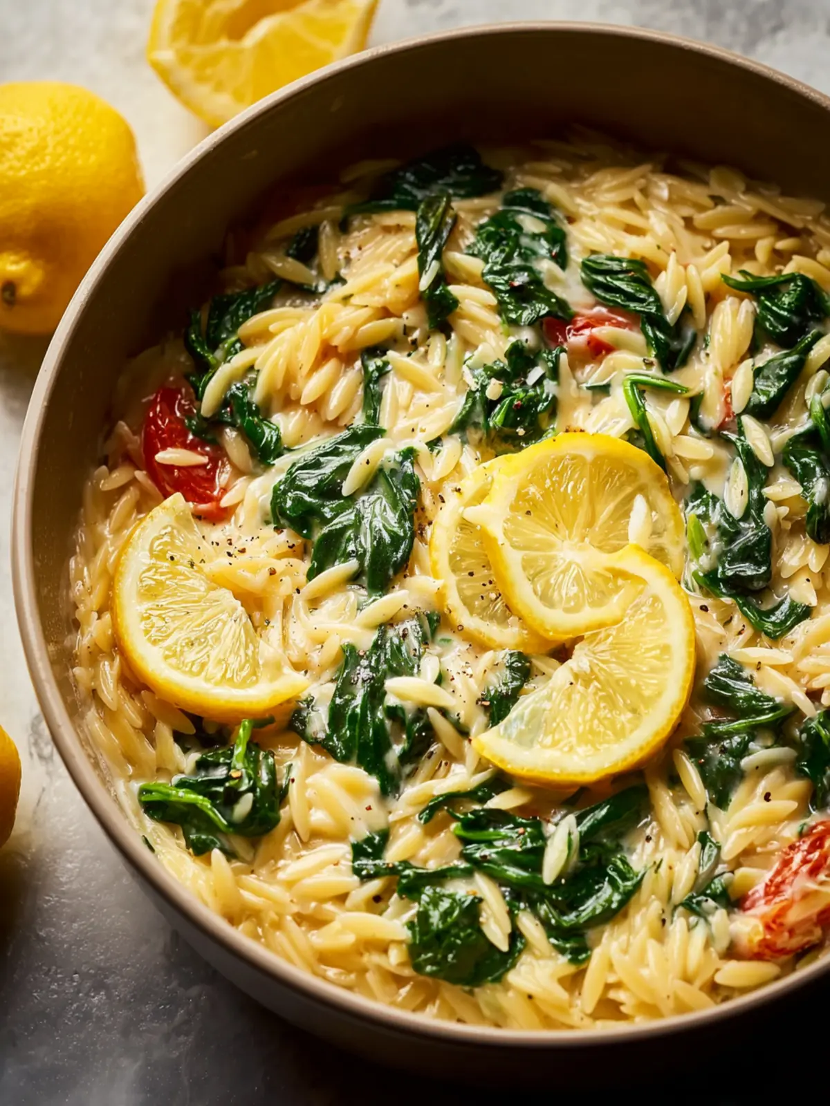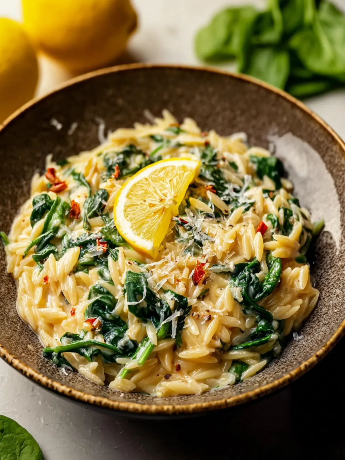 This creamy orzo pasta dish is infused with fresh spinach and zesty lemon for a delightful meal that comes together quickly.