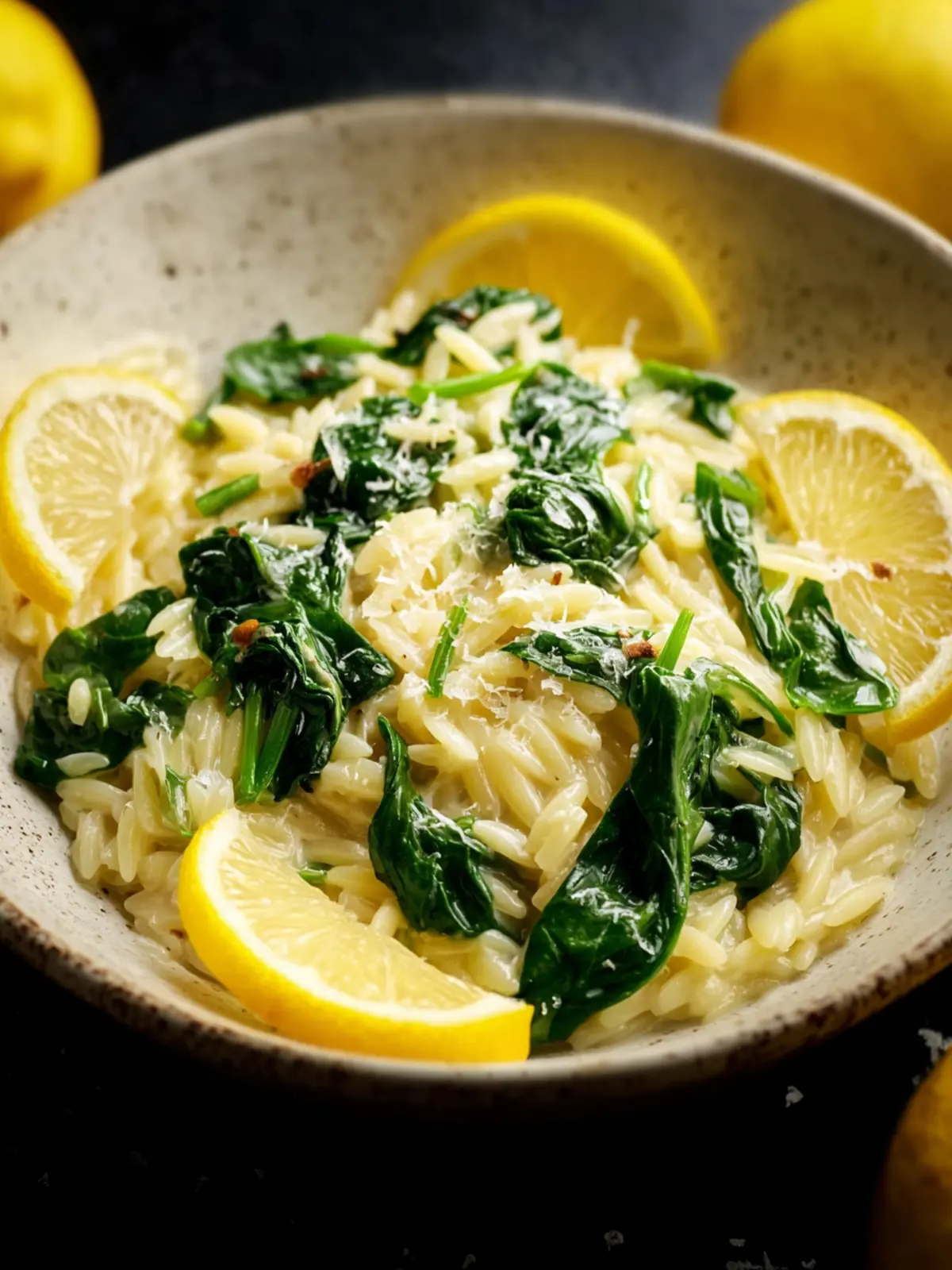Fresh Spinach: Not only does spinach bring a vibrant pop of color, but it also adds essential nutrients. It wilts wonderfully into the warm orzo, making each bowl both healthy and appetizing.