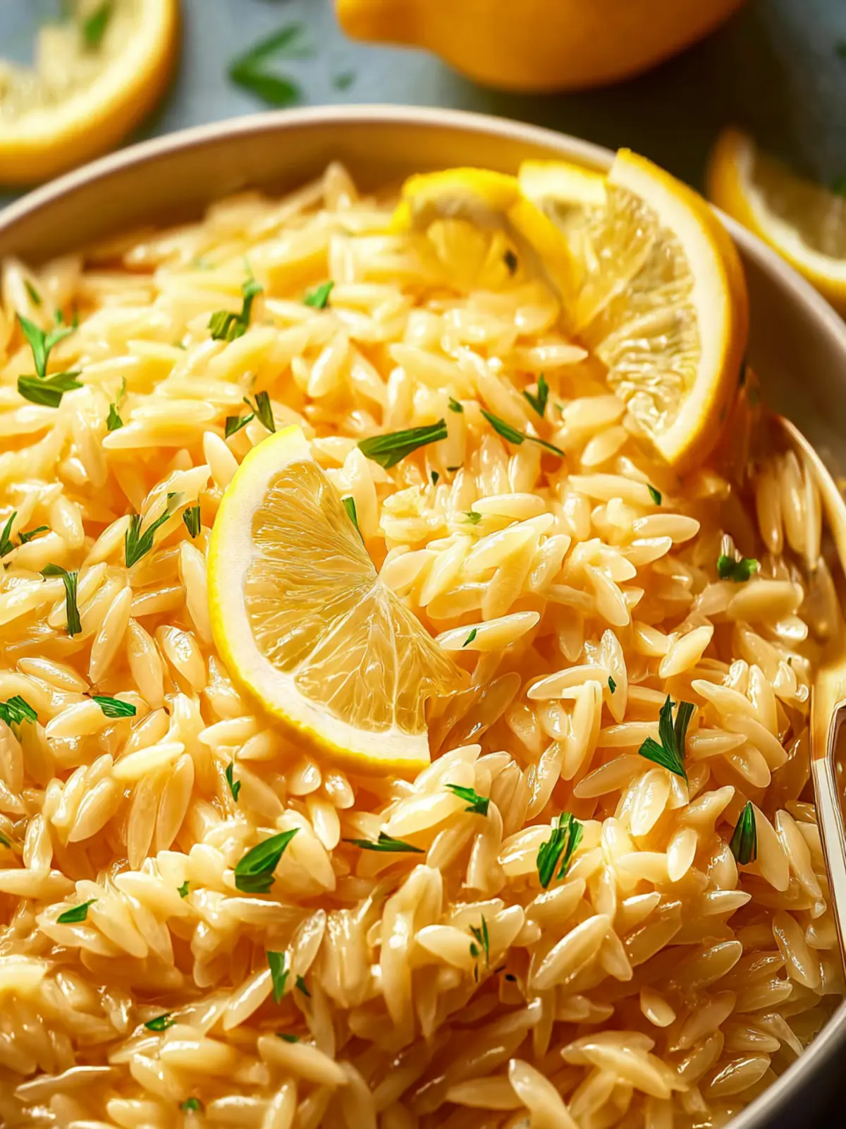 Fresh parsley: Finishing with vibrant chopped parsley not only adds a pop of color but also brings a fresh, herbal note that elevates the zesty lemon orzo recipe to new heights.